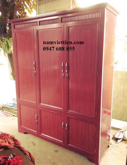 Tủ đựng quần áo nhôm kính cao cấp giả gỗ.